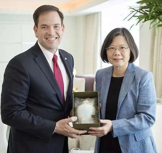 ▲資料圖片:2017年6月,蔡英文過境邁阿密時,與參議員盧比奧見面。
