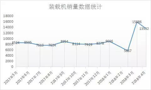 通過觀察2017年5月到2018年4月一年間的裝載機(jī)銷量數(shù)據(jù),我們可以發(fā)現(xiàn),近一年間,裝載機(jī)銷量普遍呈上升趨勢(shì),然而進(jìn)入2018年以來,卻是高低起伏不平。2018年2月,裝載機(jī)銷量同比下滑19.18%,環(huán)比下滑59.45%。2018年4月,裝載機(jī)銷量同比增長49.5%,環(huán)比下滑14.8%。